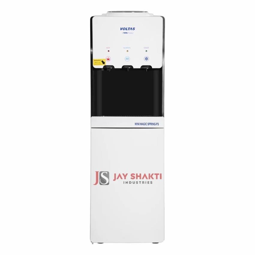 Voltas Mini Magic Spring-FS water dispenser machine with 20 liters capacity. This white machine is packaged in a box for easy transport and setup.