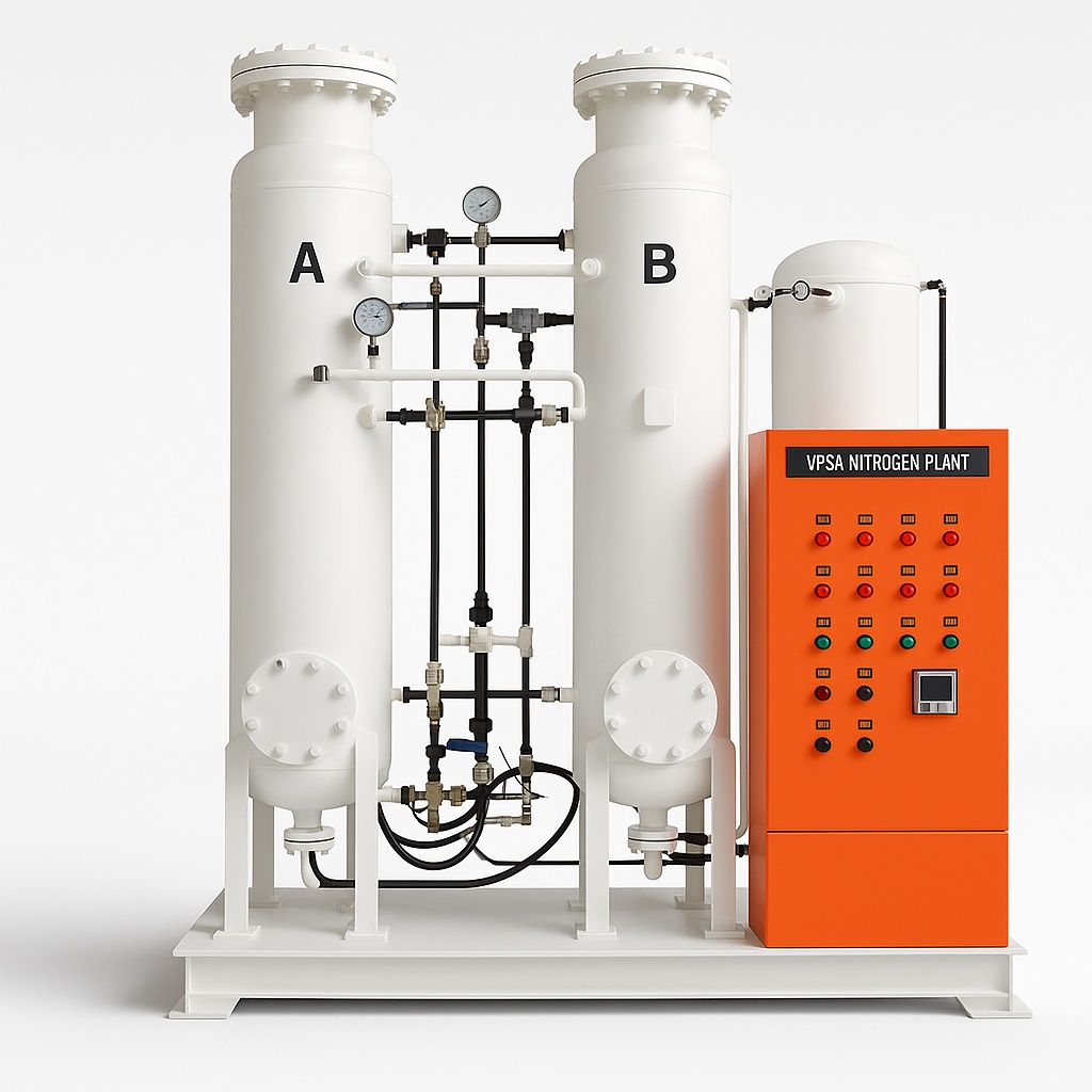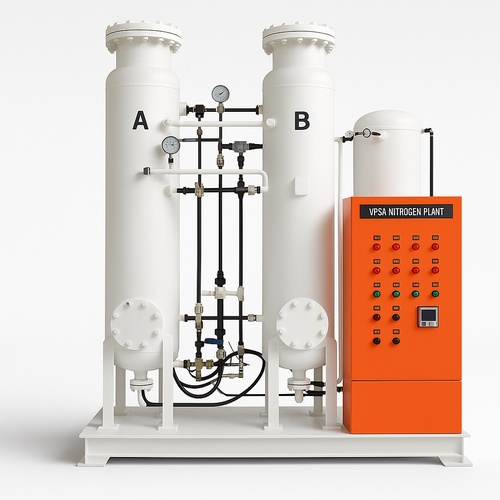 Automatic VPSA Nitrogen Generator Machine with a capacity of 50 Nm3/Hr. Designed for industrial applications, this equipment utilizes Vacuum Pressure Swing Adsorption technology. Further specifications not provided.