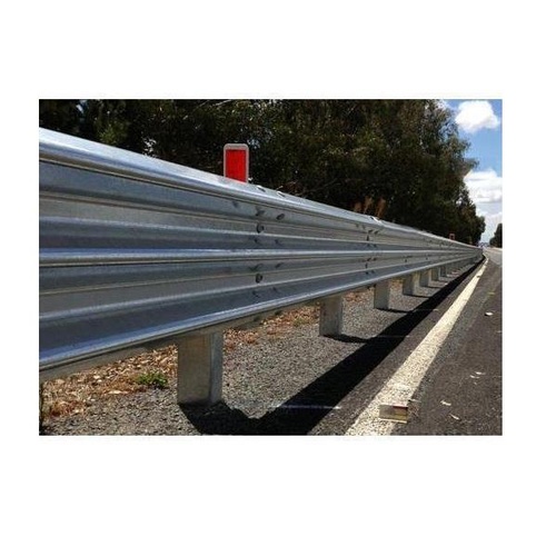 Cold rolled, galvanized mild steel W beam highway barrier. Material grade EN8, 2-3 mm thickness, for exterior use. Durable and effective road safety equipment.