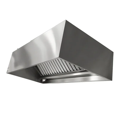 Wall-hanging stainless steel kitchen exhaust system with manual controls for commercial kitchens. Durable SS construction ensures reliable performance. Available in stock.