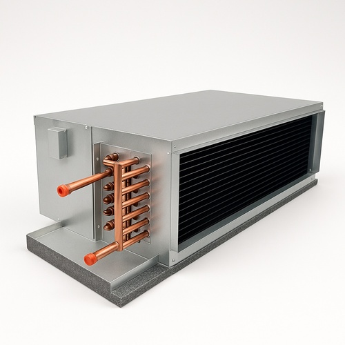 Wall-mounted Hydronic Fan Coil Unit constructed from galvanized iron. Offers up to 3-ton capacity, operating on 230 V, 50 Hz single phase power. Suitable for residential and commercial use.