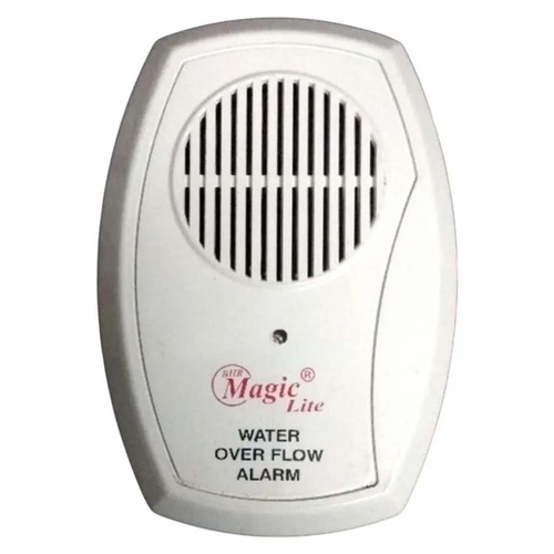 White PVC water alarm bell for domestic use, operating on 240V. Features low sound level and simple packaging.