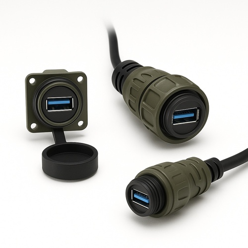 IP68 rated waterproof USB connector for reliable connectivity in harsh environments. Durable construction ensures secure data transfer. Made in India. Part Number: SE-USB.