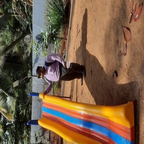 Outdoor wave slide, 4 ft. Made from FRP with an iron central support. Suitable for children aged 2-13. Red color, designed for outdoor playground use.