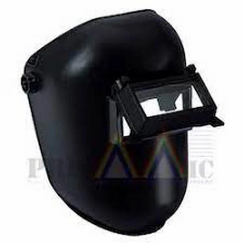 Black steel welding face shield with 3mm visor thickness. Suitable for industrial applications and welding. One size fits all.