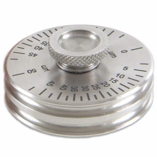 This round, SS 316 stainless steel wet film wheel gauge measures 0 to 1000 micrometers with 5% accuracy. Made in India.