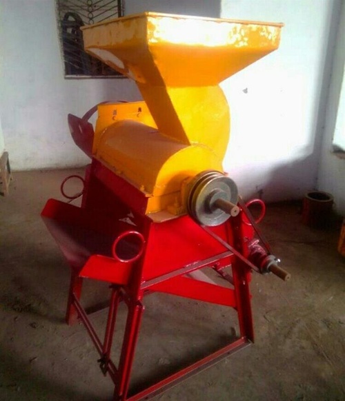 High capacity maize sheller equipment with wheels. Operates on 2hp/3hp single phase power. Ideal for new applications. Compact and efficient design.