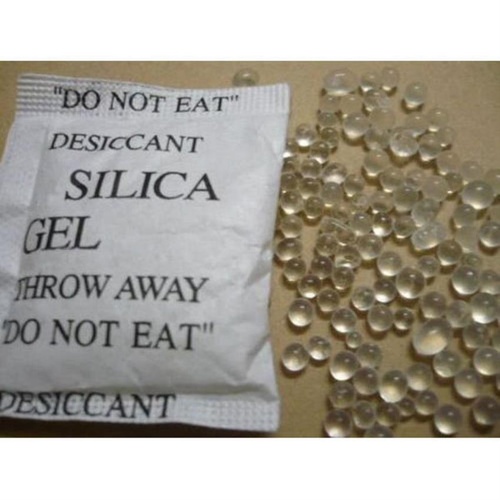 White, chemical grade silica gel granules in a 10g pouch. Features round shape and is a silica-alumina gel type.