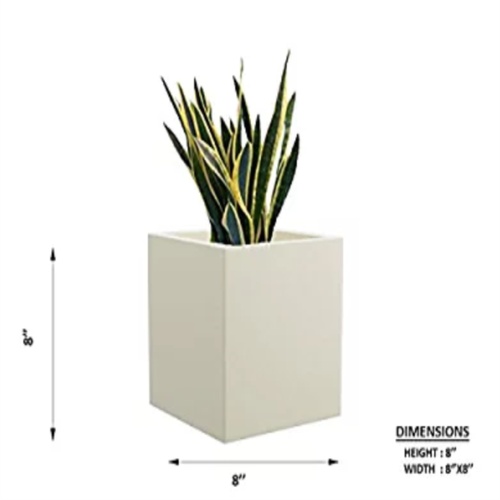 White, 8"x8" square garden planter made of fiberglass. Rust-free, 2mm-4mm thick fiber construction for outdoor garden use. Weighs 3 KGS.