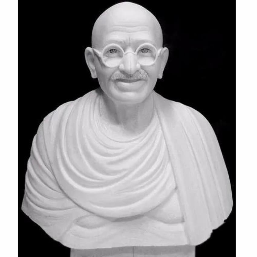White marble Mahatma Gandhi statue, 24 inch size, 0-2 feet height. Polished finish for interior decor. Made in India.