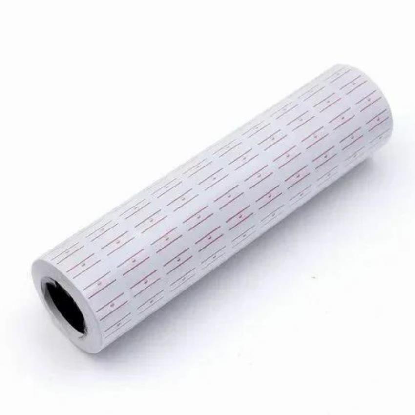 White paper price marking labels on a roll. Printed pattern, 5-40 micron thickness. Minimum order of 100 pieces.