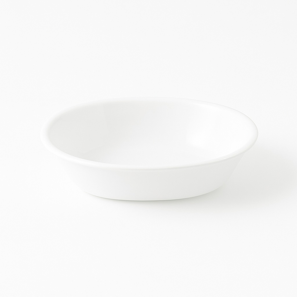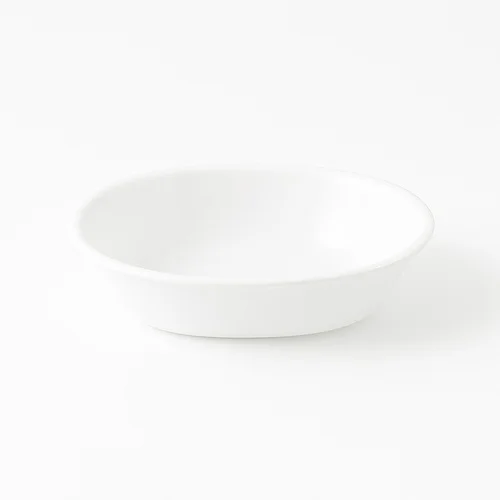 White plastic chat plate for serving food. Made from durable plastic material. Available with a minimum order quantity of 500 pieces.