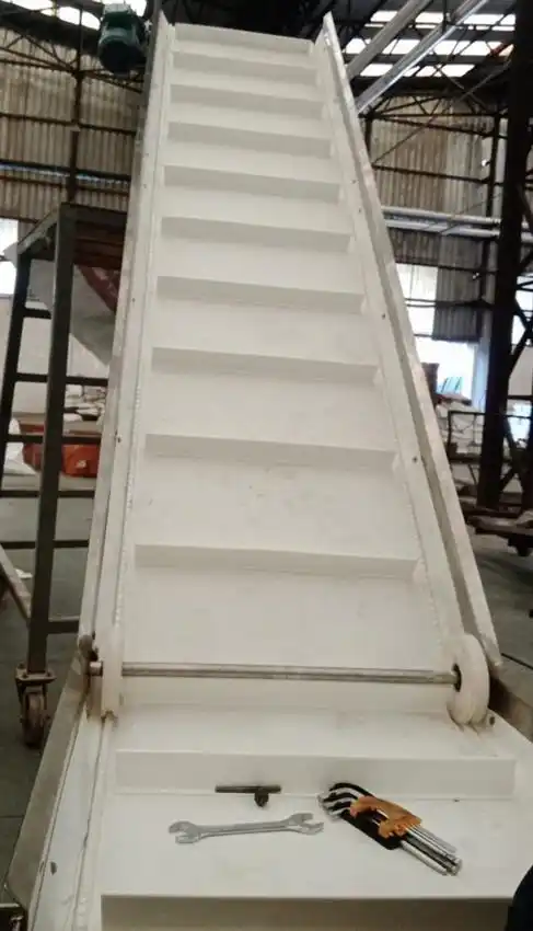 White PVC inclined belt conveyor, 10 feet height. 100 kg/m capacity, 200kg load capacity. Made in India. Minimum order 50 pieces.