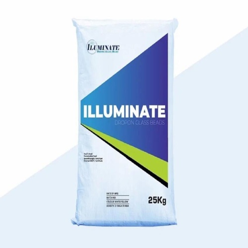 White glass spheres with a density of 2.4-2.6 g/cm3. Packaged in 25kg paper bags with a 1-year shelf life for road marking.