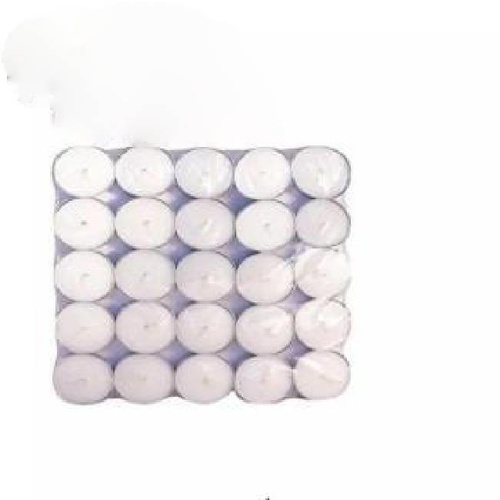 White, round candles designed for party use. One pack contains multiple candles. Made in India. Minimum order: 1 pack.