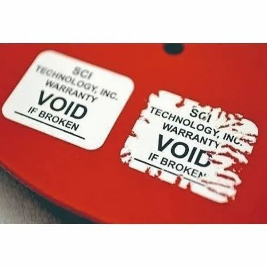 White polyester UDV labels on a roll. Ultra destructible vinyl material for security. Roll packaging for efficient application. Durable and tamper-evident.