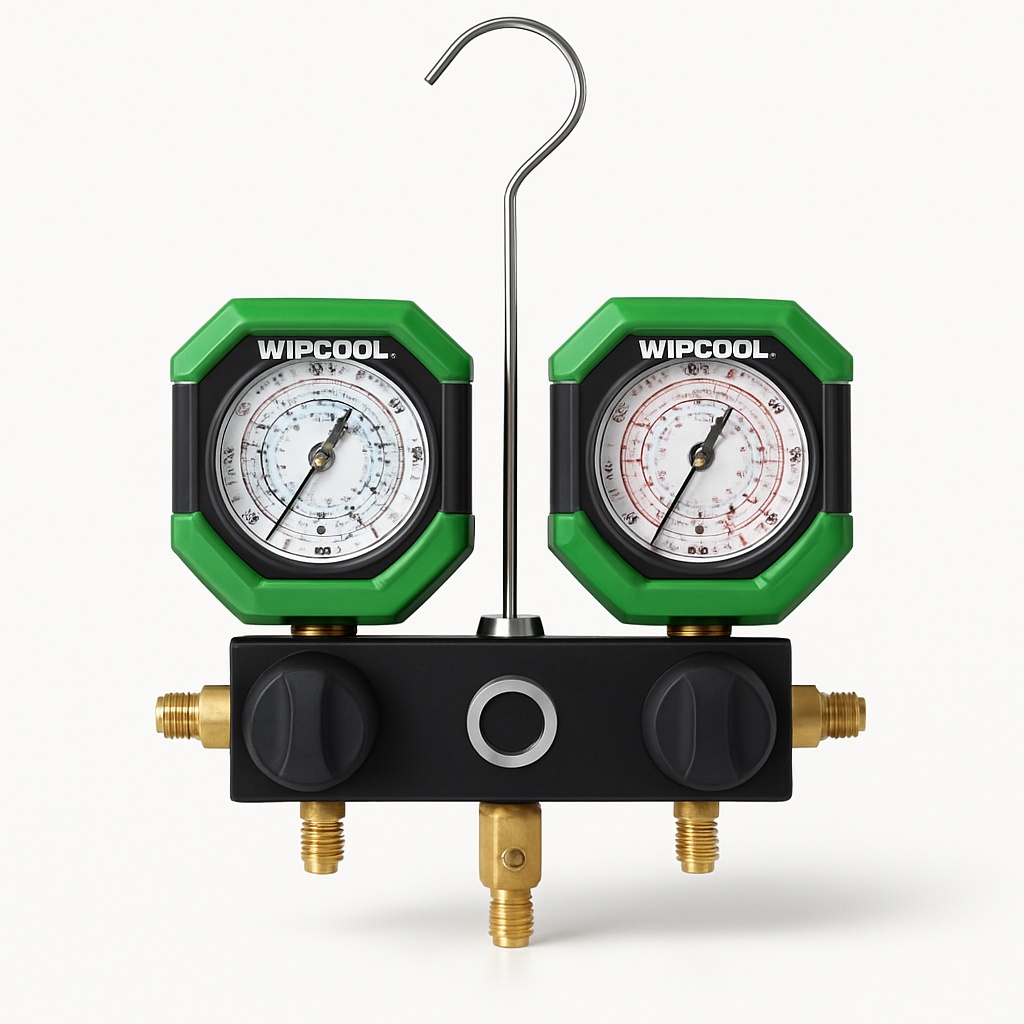 Wipcool MG-2K HVAC AC manifold gauge set with analog display and 2-inch dial. Features corrosion resistance and compatibility with MG-2K refrigerant.