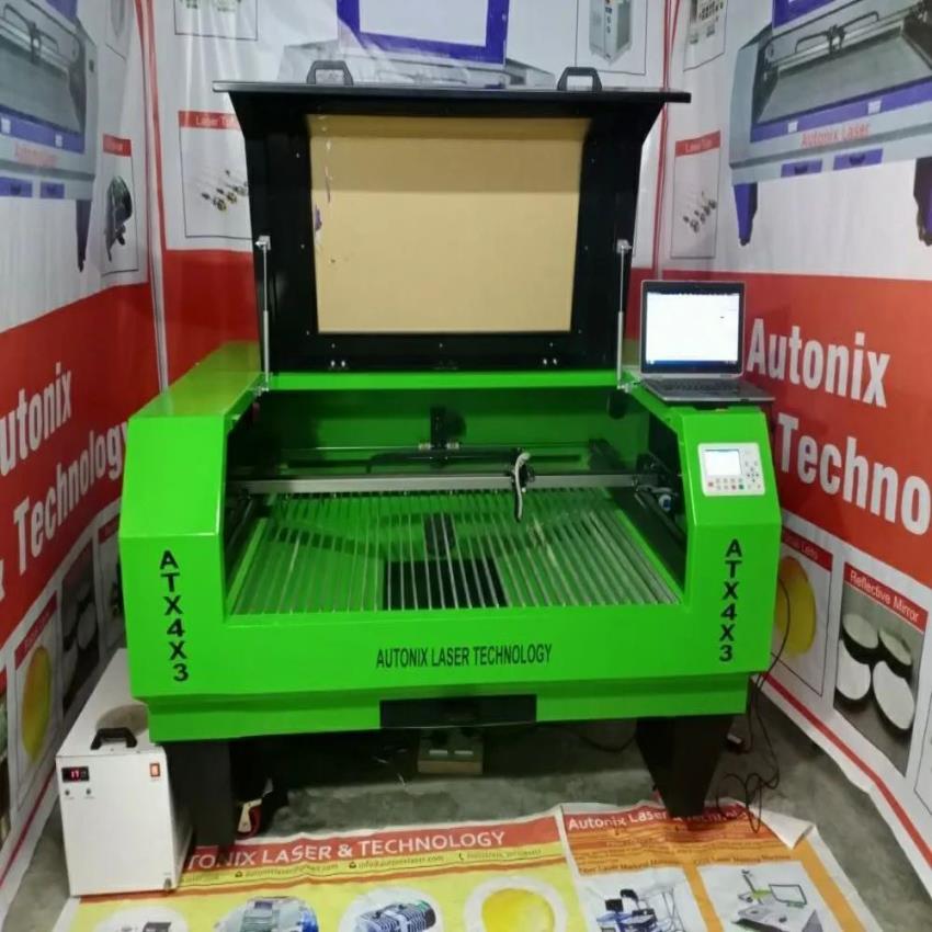 Automatic CNC wood laser cutting machine, 100W. 200m/day capacity, 36x48 inch working area, 2000mm/sec speed. Made in India, 2-phase, 220V.