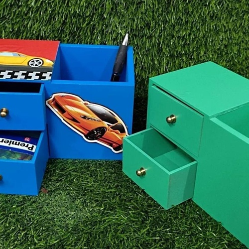 Wood MDF pen stand in multiple colors, measuring 8 by 4 by 5 inches. Designed for decorative purposes, adding a touch of style to spaces.