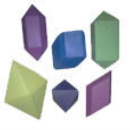 Wooden crystal shapes with a sanded surface texture. Size/dimension: 3-4 inches. Available in assorted colors. Minimum order: 24 pieces.