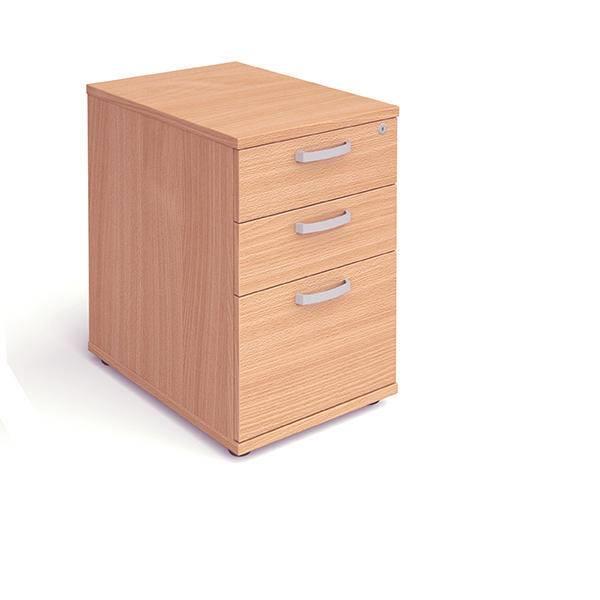 Wooden mobile pedestal with 3 drawers. Cubic shape, polished finish, ideal for office or home organization. Provides convenient, movable storage for essential items.