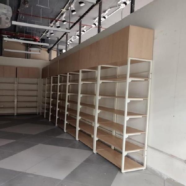 This wooden display rack features 6 shelves and a free-standing unit design, perfect for shoes and chappals. With an 8-foot height and 100 Kg weight tolerance, it offers durable organization.