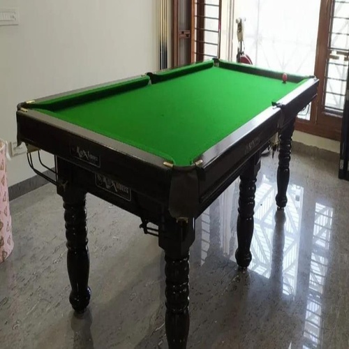 Wooden pool table for sports applications. Features a green table cover and accommodates Carrom games. Available for bulk orders. Model FAW004.