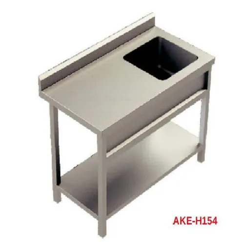 Work table with integrated sink, model AKE-154-A. Dimensions are 36 inches by 24 inches by 34 inches plus a 4-inch backsplash.