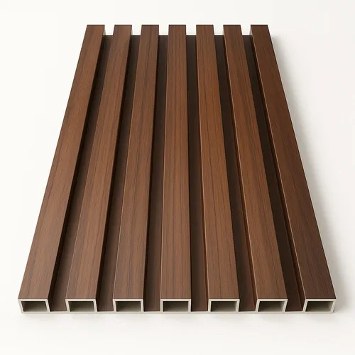 WPC Charcoal Wood Panels, 6"x9.5 ft. Waterproof, rectangular design with a wooden aesthetic. Thickness 12-25mm. Ideal for commercial use. Made in India.