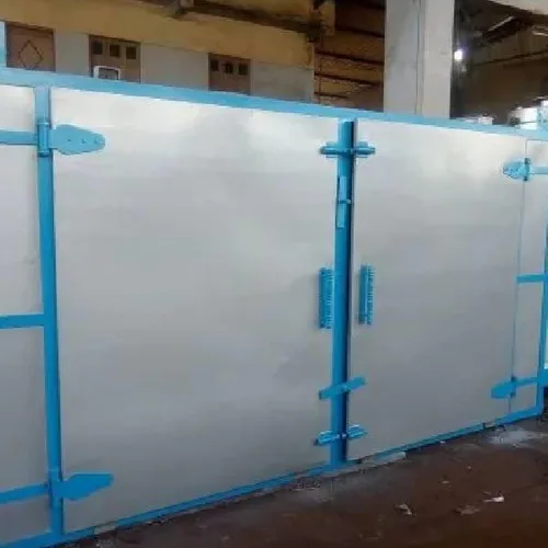 Mild steel yarn drying oven with duel air flow. Operates on 410V, reaching a maximum temperature of 1350°C, with a 500kg capacity. Made in India.