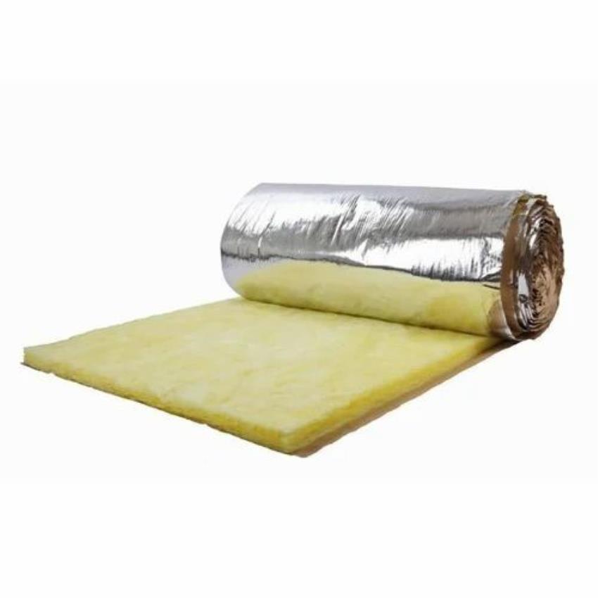 Yellow glass wool insulation rolls with 20-40 mm thickness and 10-50 Kg/m3 density. Offers temperature resistance of 200-400 degrees Celsius and width up to 1.2 m.