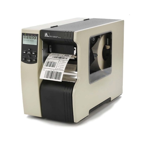 This Zebra R110Xi4 barcode printer has a 2-inch max print width and 300 DPI resolution. It supports Direct Thermal printing, offers USB, Ethernet, and Bluetooth connectivity, and prints at 6 inches/second.