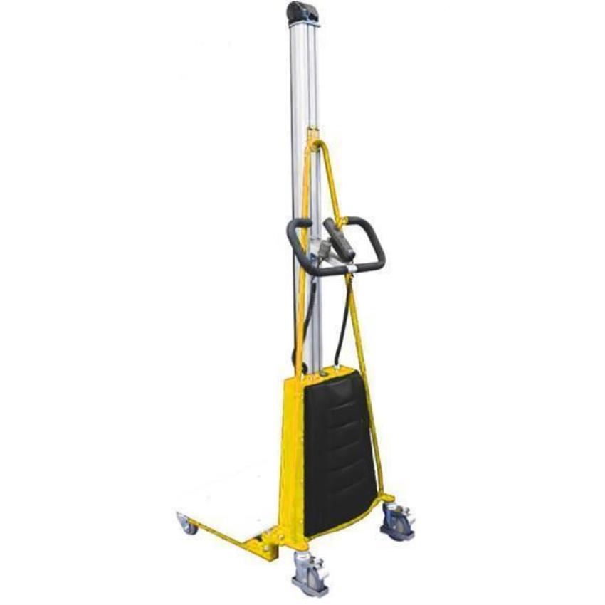 ZED M100 electric work positioner for pharmaceutical applications. 100 Kg capacity, 0-10m lifting height, outdoor environment, 12-month warranty.