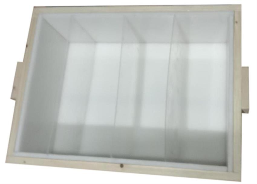 10kg capacity wooden soap making mould with 10mm HDPE sheet. Features a brown and white color-coated finish. Operates between -40°C to 220°C. Rectangular shape, 35x15x8cm dimensions.