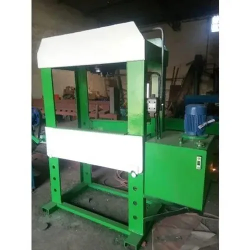 Semi-automatic industrial hydraulic press with 100 Ton capacity. Features a 40 x 24-inch bed size and hydraulic lever control. Operates on 230V, 50Hz with a 5 HP motor.