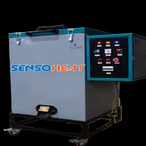 Semi-automatic 100kg capacity flux oven for flux heating, baking, and drying. Operates on 230/415VAC, reaching 300-400°C. Single door design.