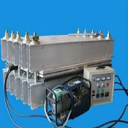 New, Made in India vulcanizing press machine for 1400 mm belts. Operates at 140 Deg C with 2.3 MPa pressure.