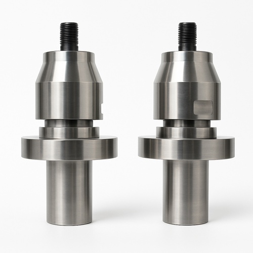 Polished stainless steel ultrasonic welding booster with 15kHz frequency. Weighs 2.7 Kg, supplied in a protective wooden box. Designed for efficient ultrasonic welding applications.
