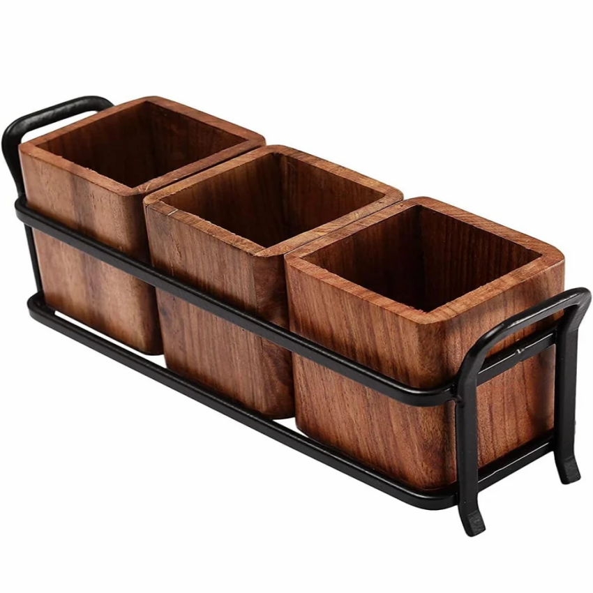 Multipurpose wooden cutlery holder, 15x12x10 cm. Features a natural wooden finish and termite-free construction. Suitable for home and kitchen use.