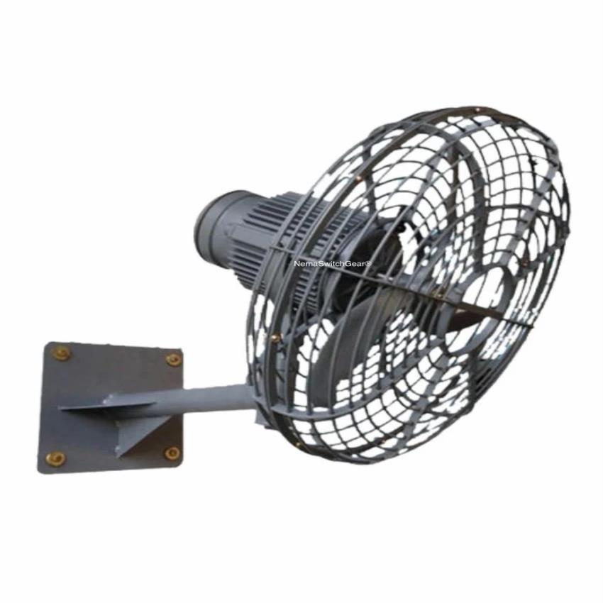 Flameproof, wall-mounted fan with an 18-inch aluminum construction and 18-inch blade size. Manufactured in India with a minimum order of 1 piece.