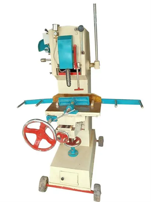 Semi-automatic electric chain mortiser machine. 2 HP (1.5KW), 220-230V, 1440 RPM motor. Cast iron and mild steel construction for square hole drilling.