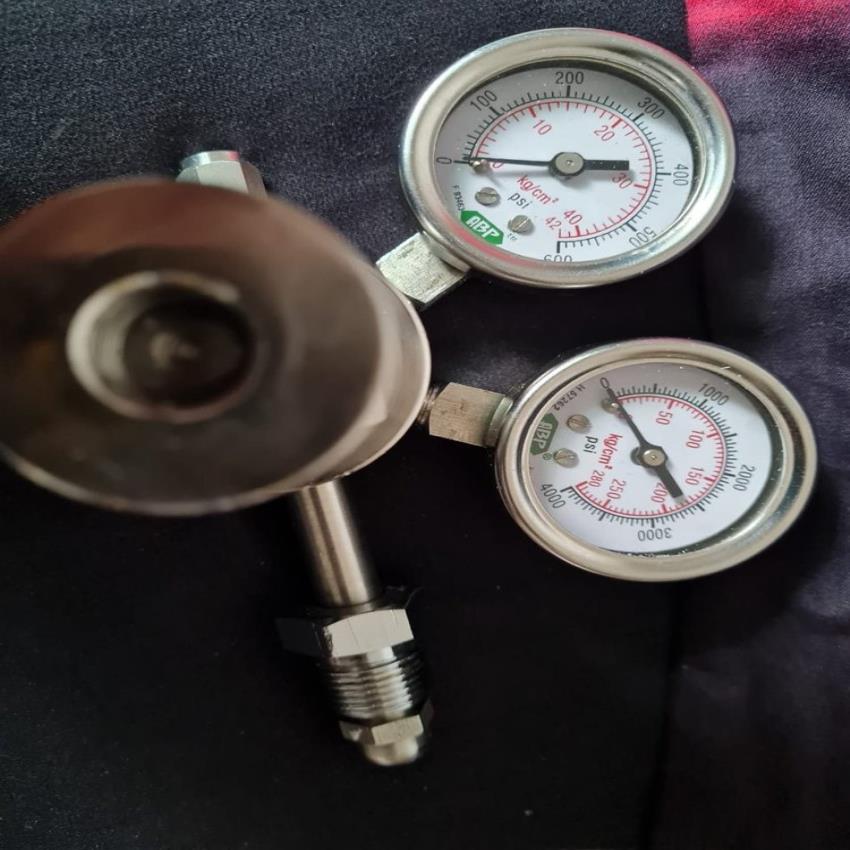 Silvery white stainless steel high pressure regulator. Operates at 20 bar, designed for industrial applications with nitrogen gas. Ensures stable and safe pressure reduction.
