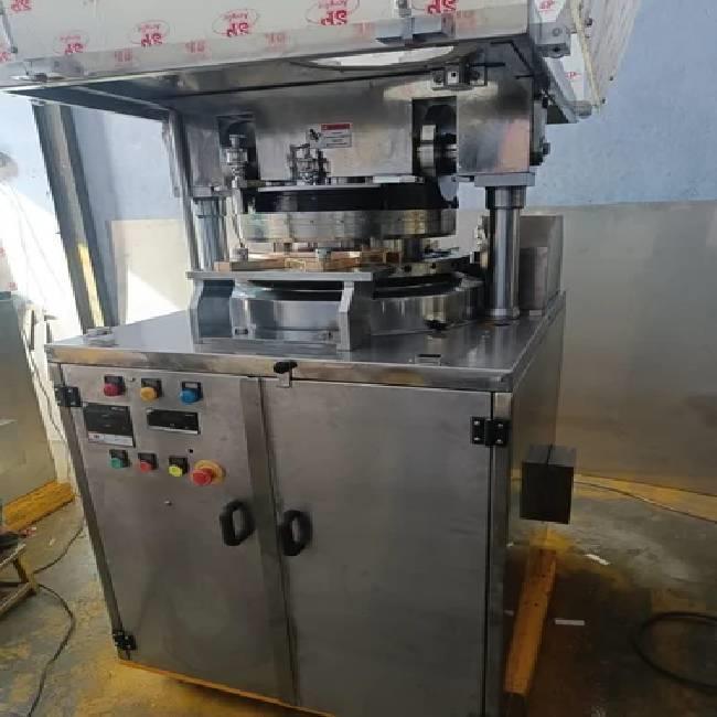 Automatic stainless steel tablet compression machine with 27 stations. Offers 900-3000 tablets/minute capacity. Electric powered, operates on 415V. Weight: 1500 Tones.