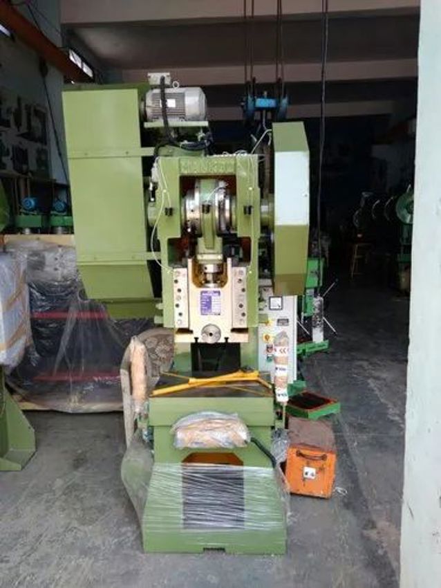 Automatic mild steel body pneumatic power press, 30 Ton capacity. Features 3 HP motor, 76 mm stroke, 1440 RPM speed. Requires separate air compressor.