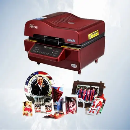 Automatic/semi-automatic 3D sublimation heat press. Prints mobile covers, stones, tiles, and more. Quick 20-30 sec print speed at 220V.