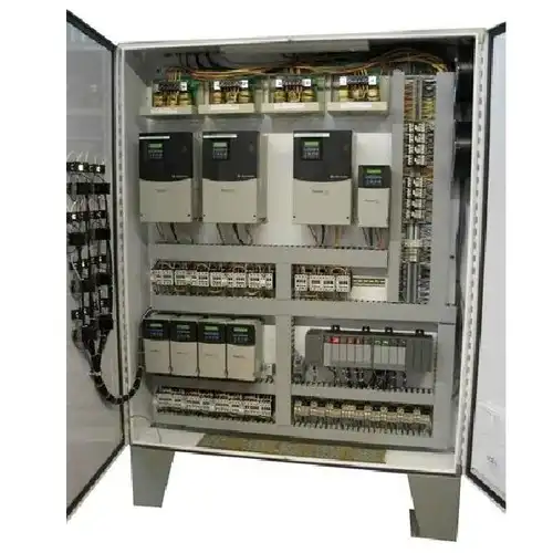 3 kV VFD control panel with mild steel construction. Operates at 50 Hz frequency, 3 kV power. Dimensions are 3 X 2 feet (Length X Width).