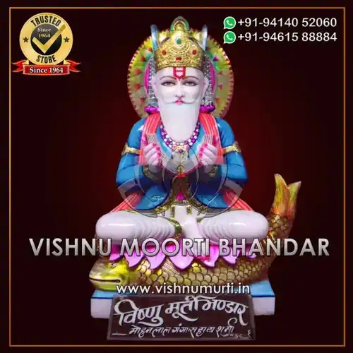 4 ft multicolor Jhule Lal statue for temples and home worship. Features original gold plating and finest lifelong finishing.