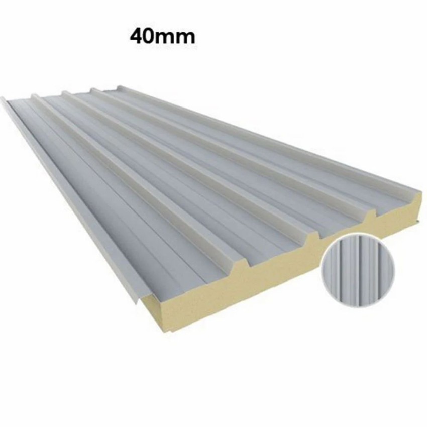Color coated PUF insulated panel for roofing. 40mm thickness, available in white. In stock for immediate purchase and installation.