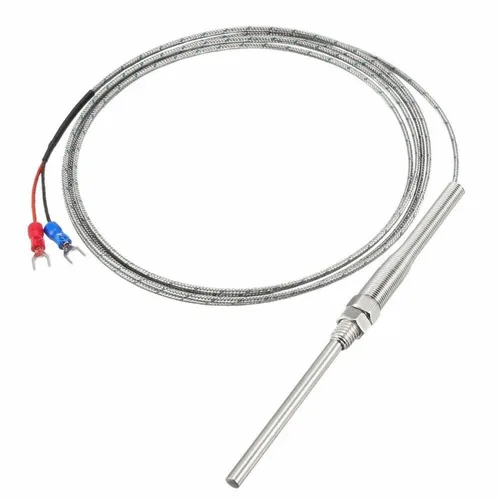 4500mm K Type Isolated Thermocouple. Constructed from polished stainless steel for durable temperature sensing. Silver base color. Ideal for industrial applications.