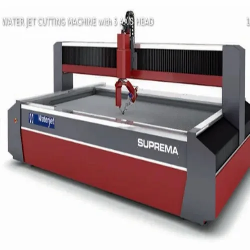 Industrial water jet cutting machine equipped with a 5-axis head for versatile and precise material processing. Engineered for complex shapes and high accuracy cutting tasks.